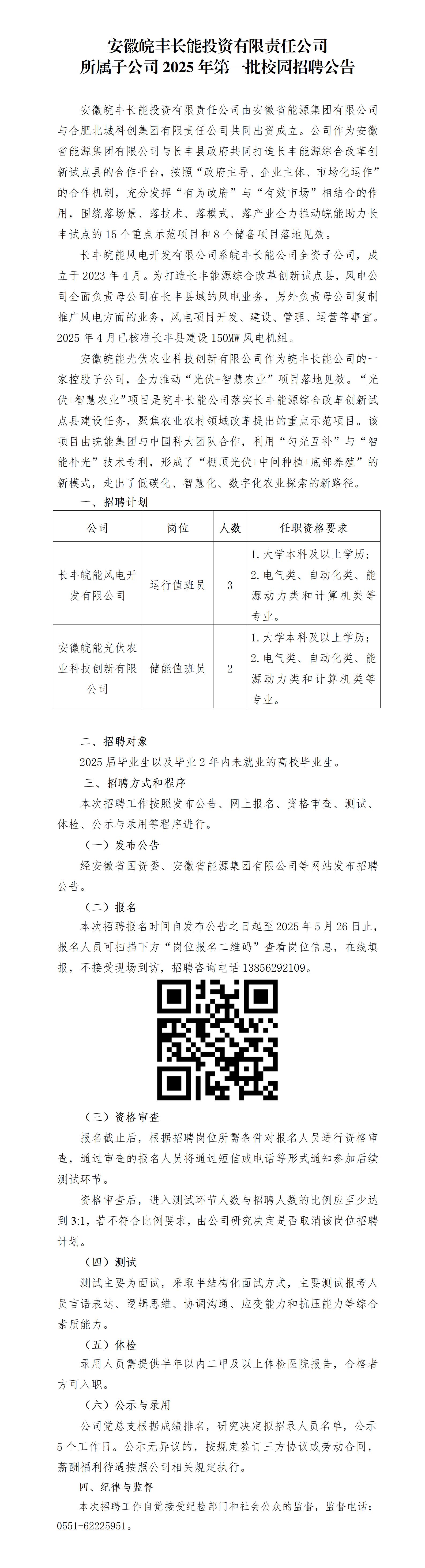 2025年安徽皖豐長能投資有限責任公司所屬子公司第一批校園招聘公告