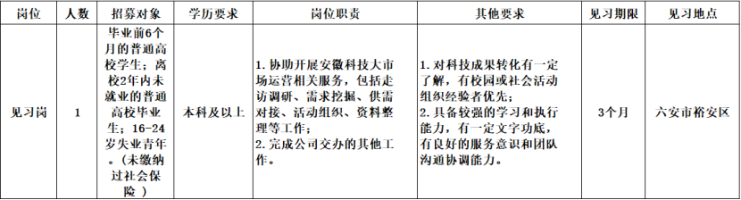2025年安徽科技大市場(chǎng)建設(shè)運(yùn)營(yíng)有限責(zé)任公司見習(xí)人員(六安)招募公告