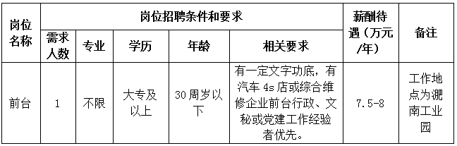 安徽稻香樓汽車維修有限責(zé)任公司為安徽省省直機(jī)關(guān)接待車隊所屬企業(yè),因工作需要,現(xiàn)面向社會公開招聘工作人員1名?,F(xiàn)就有關(guān)事項公告如下: