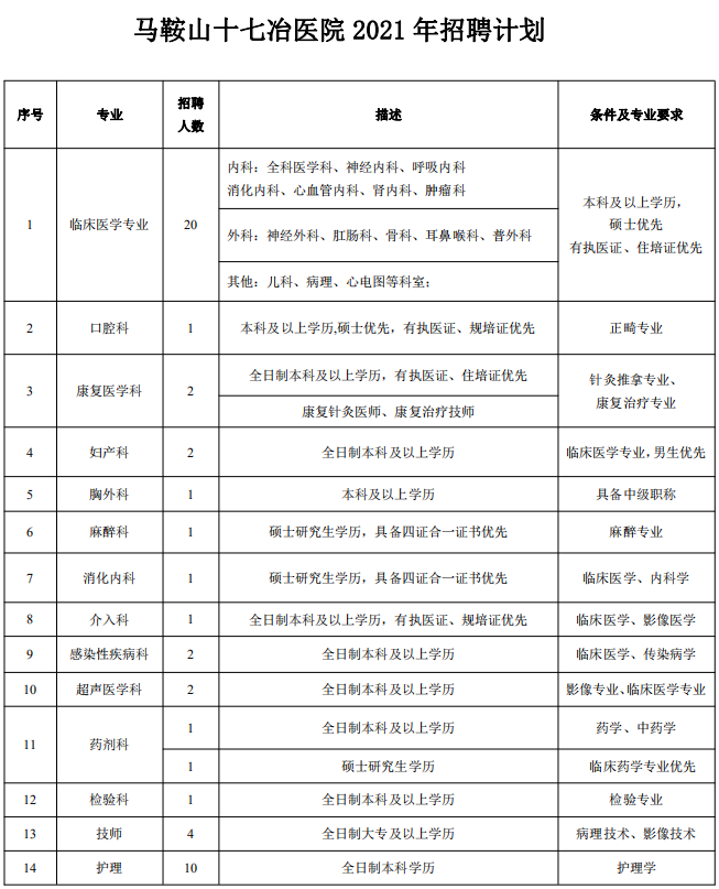 單位地址:安徽省馬鞍山市湖南西路828號現(xiàn)場報名地址:馬鞍山十七冶醫(yī)院綜合樓四樓人力資源部郵件發(fā)送格式:姓名+畢業(yè)學(xué)校+專業(yè)+應(yīng)聘崗位