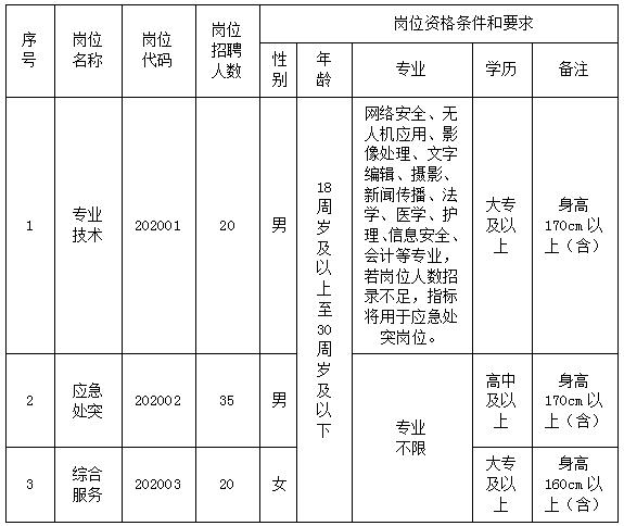 聘用人員實行勞動合同制,合同期限定為2年,試用期2個月,合同期滿后,根據(jù)工作需要確定是否續(xù)聘。實行不定時工時制,聘用期間統(tǒng)一配備服裝裝備,福利待遇按合同約定執(zhí)行,人均不低于6.2萬元(含工資、單位繳納四險一金、人身意外險、服裝費、績效、各類慰問金、辦公經(jīng)費等)。