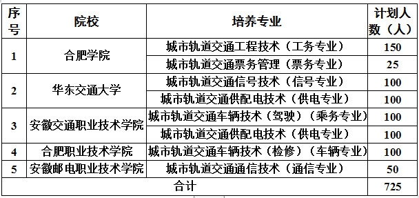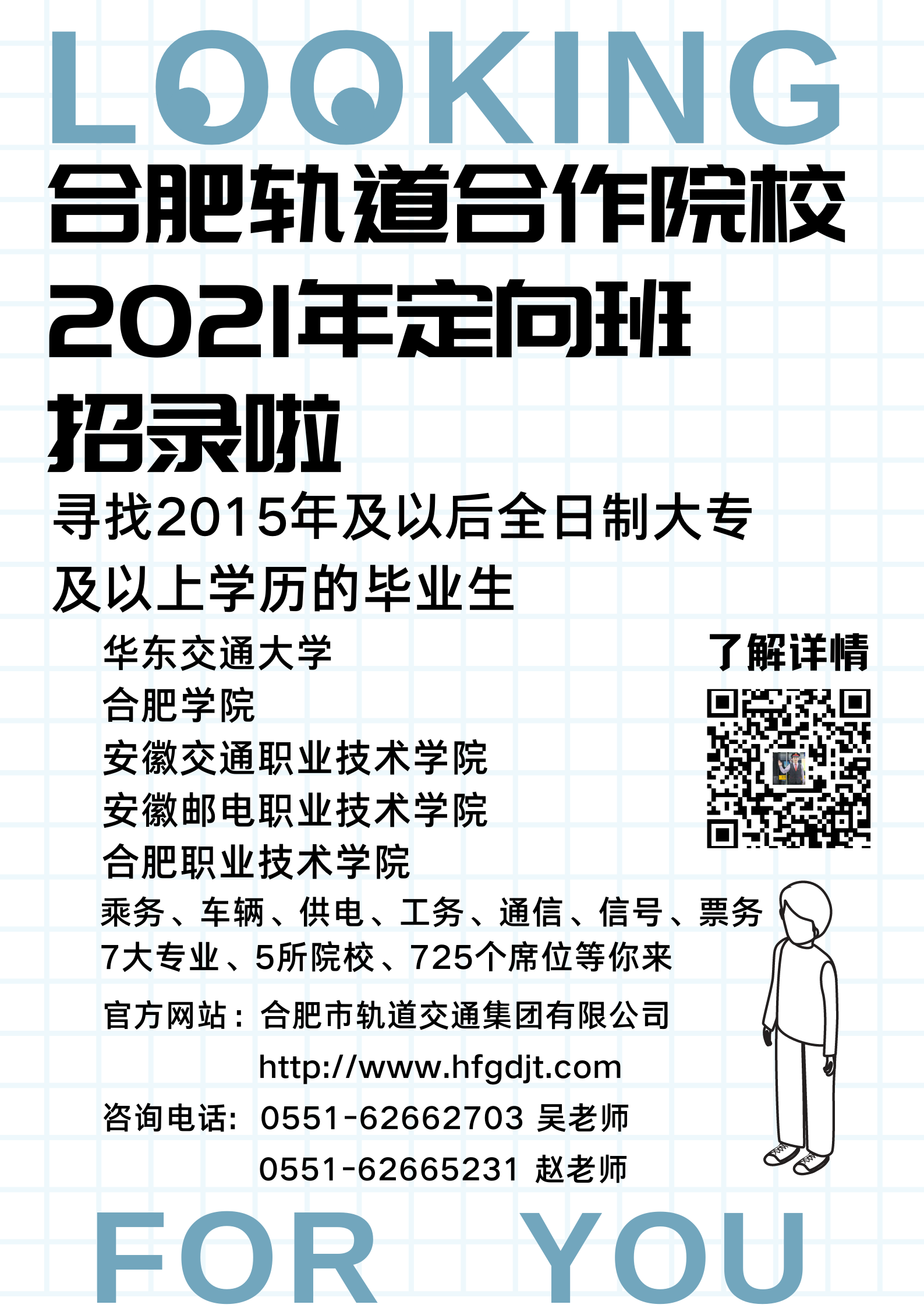 2021年合肥市軌道交通集團(tuán)有限公司合作院校定向班招生公告