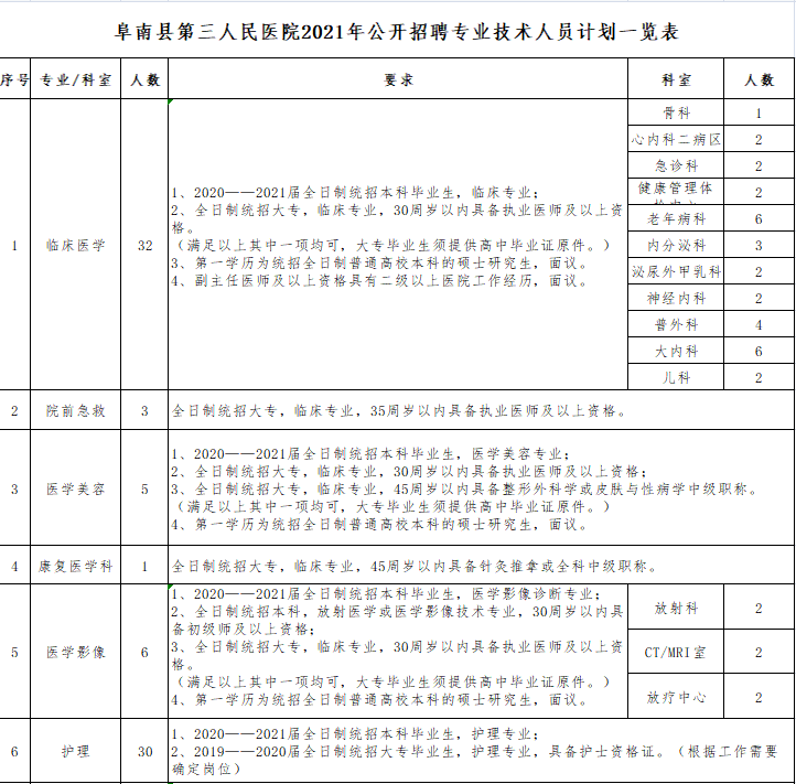 附件:《阜南縣第三人民醫(yī)院2021年公開招聘專業(yè)技術(shù)人員計劃一覽表》