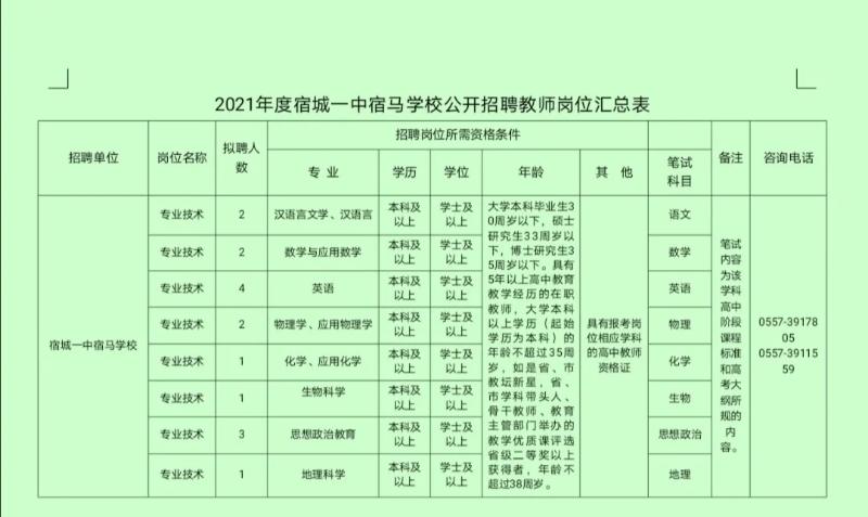 招聘相關信息在宿州教育體育局網站、宿城一中網站上發(fā)布。