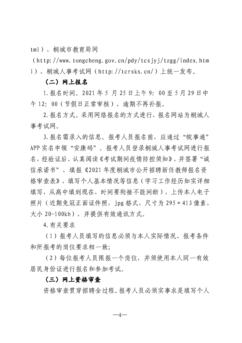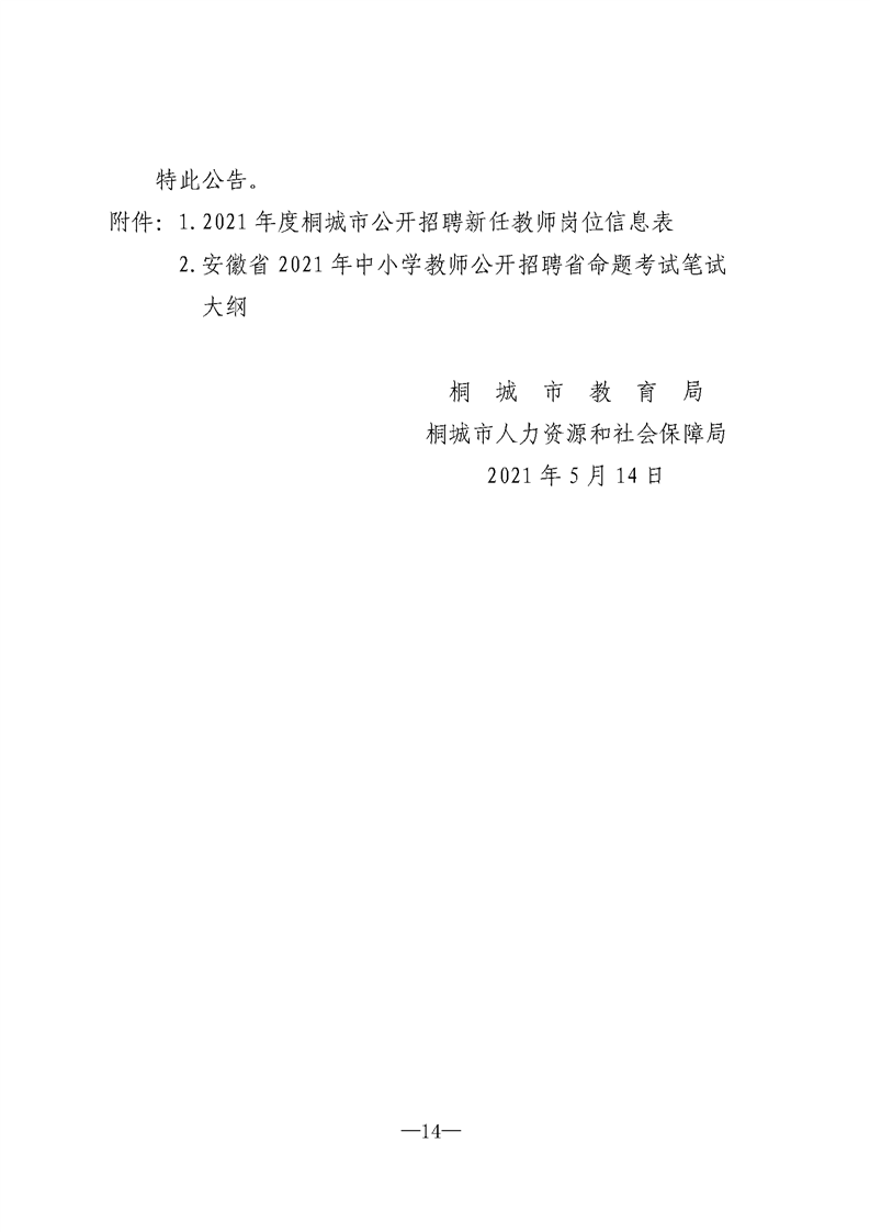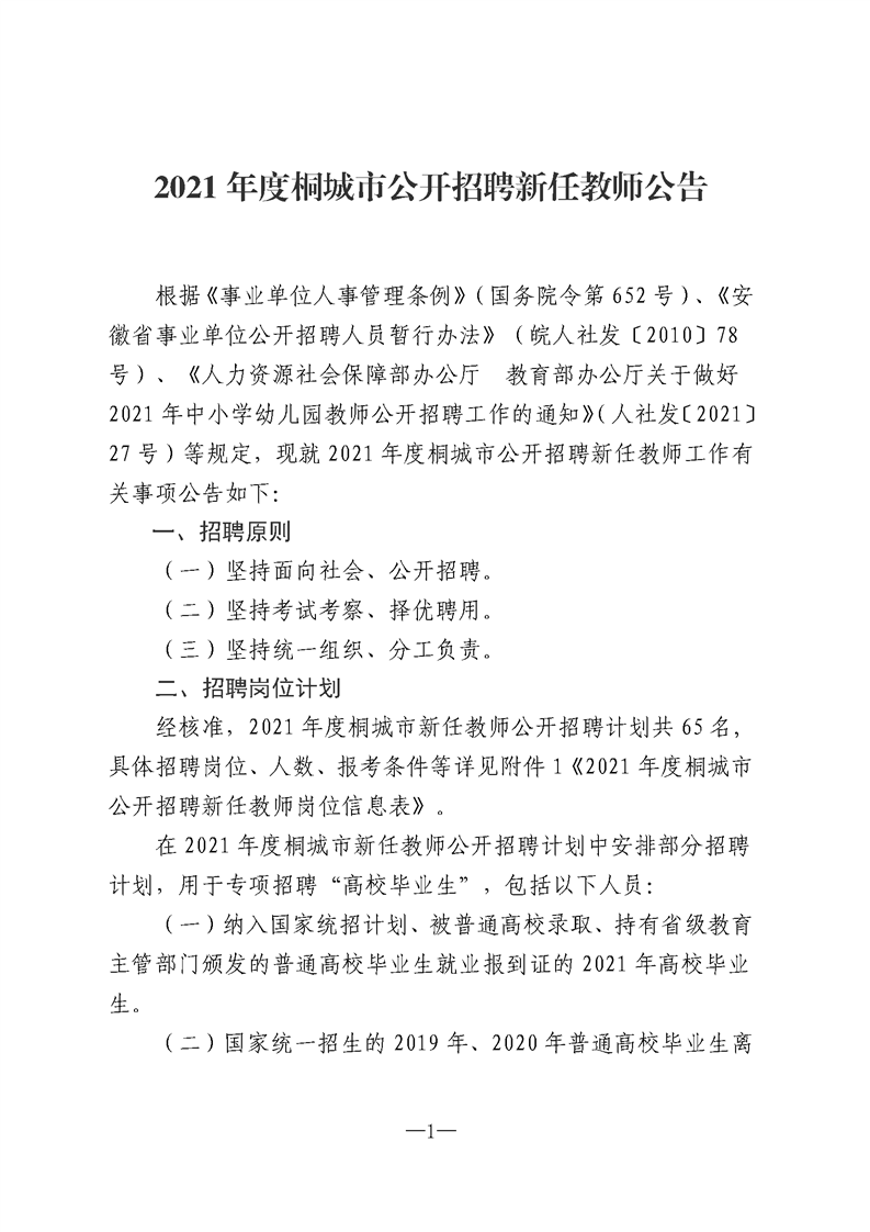 2021年安慶桐城市公開(kāi)招聘新任教師公告