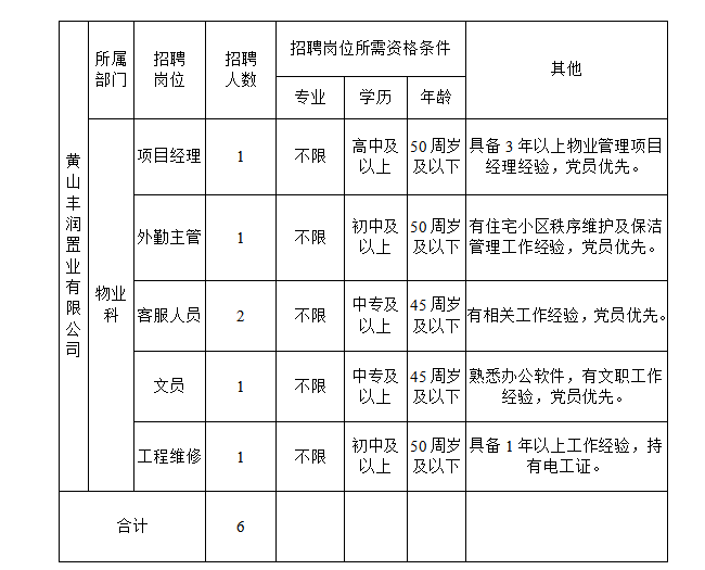 2021年黃山豐潤(rùn)置業(yè)有限公司招聘工作人員公告