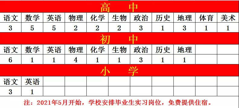 聘用要求:優(yōu)秀本、碩畢業(yè)生(有教學(xué)經(jīng)驗(yàn)者優(yōu)先)、退休后有志于一線教學(xué)的優(yōu)秀教師。