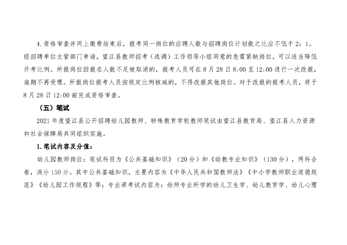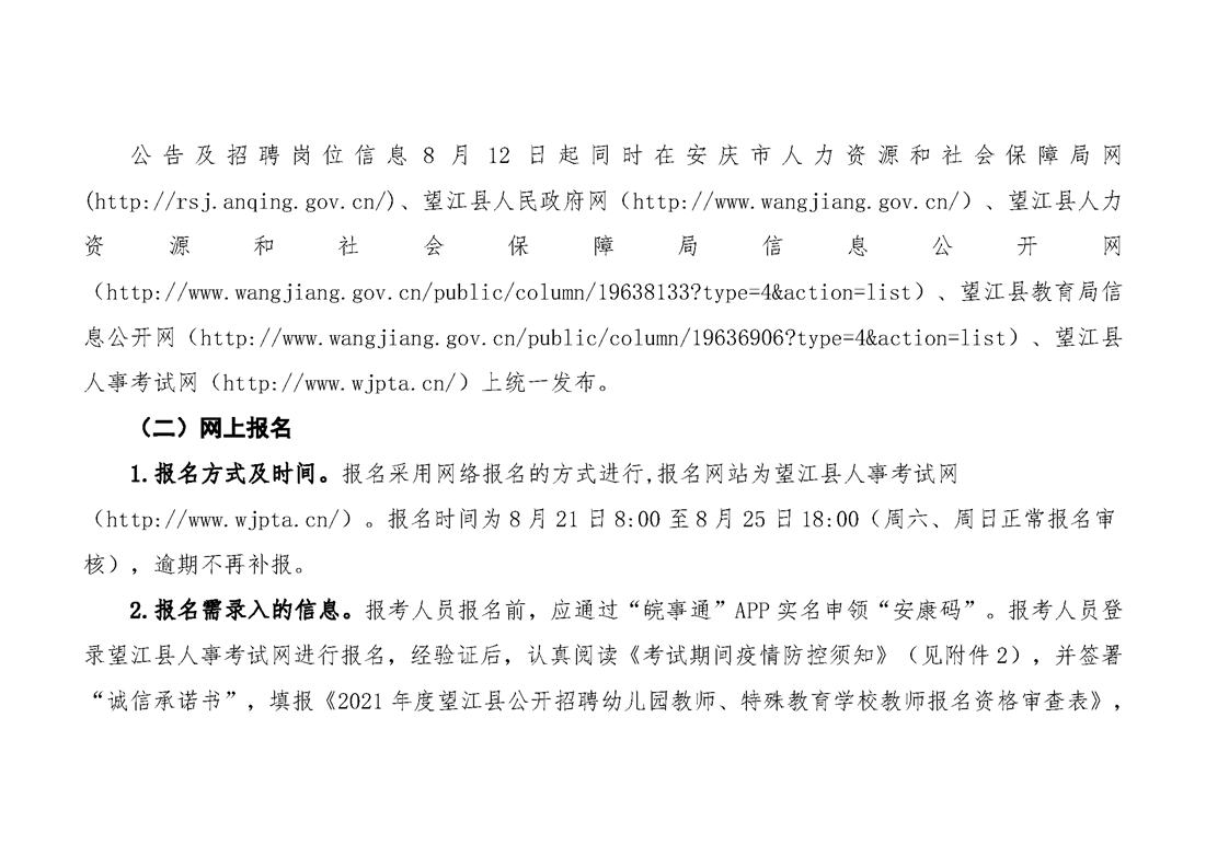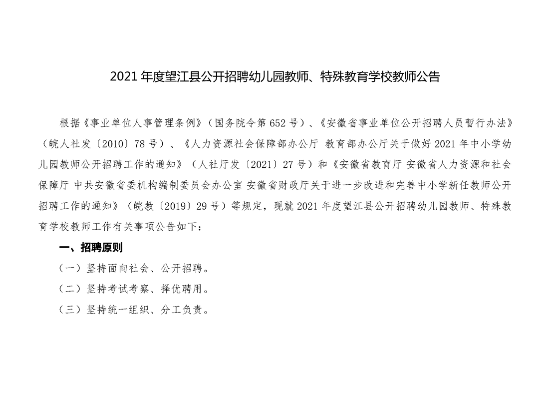 2021年安慶望江縣公開招聘幼兒園教師、特殊教育學校教師公告