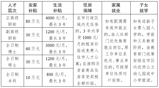 根據(jù)《中共淮北市委辦公室 淮北市人民政府辦公室關(guān)于印發(fā)〈淮北市事業(yè)單位引進急需緊缺人才暫行辦法〉的通知》(辦〔2021〕27號)等文件規(guī)定,對新引進與用人單位簽訂5年以上合同全職在淮工作的急需緊缺人才,除正常享受所在事業(yè)單位工作人員工資和各項福利外,還享受安家補貼、生活補貼、住房保障、家屬就業(yè)、子女就學等方面的優(yōu)惠待遇。