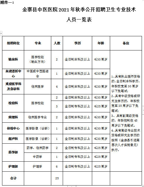 附件1:金寨縣中醫(yī)醫(yī)院2021年秋季公開(kāi)招聘衛(wèi)生專(zhuān)業(yè)技術(shù)人員一覽表
