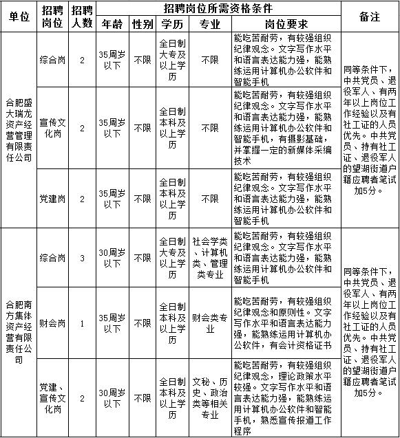 合肥包河區(qū)人力資源開發(fā)有限公司受合肥盛大瑞龍資產經營管理有限責任公司、合肥南方集體資產經營有限責任公司委托,擬面向社會公開招聘勞務派遣工作人員12名,公告如下: