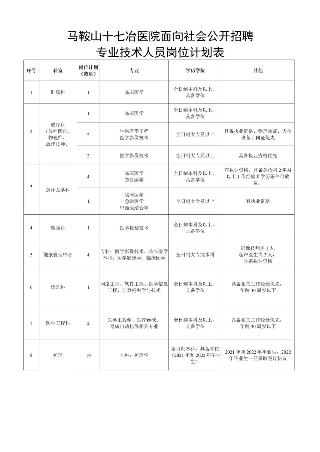 個人應聘材料發(fā)送至馬鞍山十七冶醫(yī)院人力資源部郵箱,并備注:姓名+應聘崗位+手機號。