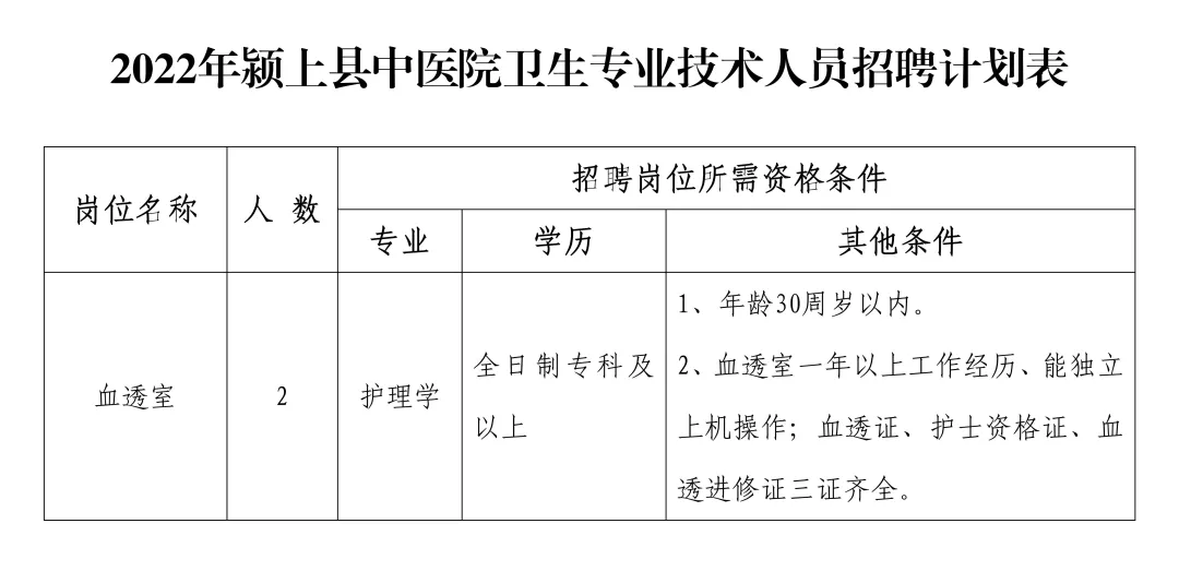 因業(yè)務(wù)發(fā)展需要,經(jīng)研究,特招聘血透專業(yè)護理人員2人?,F(xiàn)將有關(guān)事項公告如下: