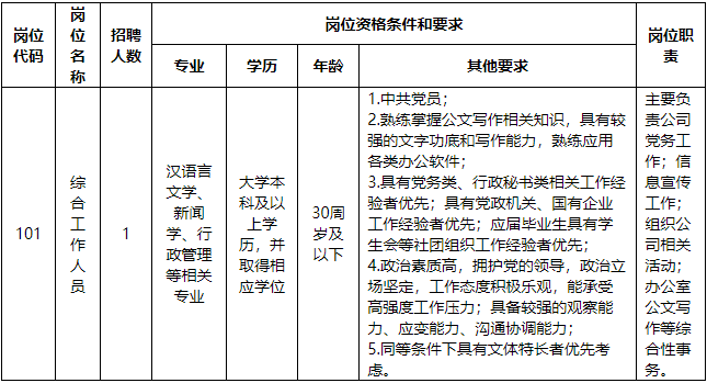 (六)符合崗位所需的其他資格條件。
