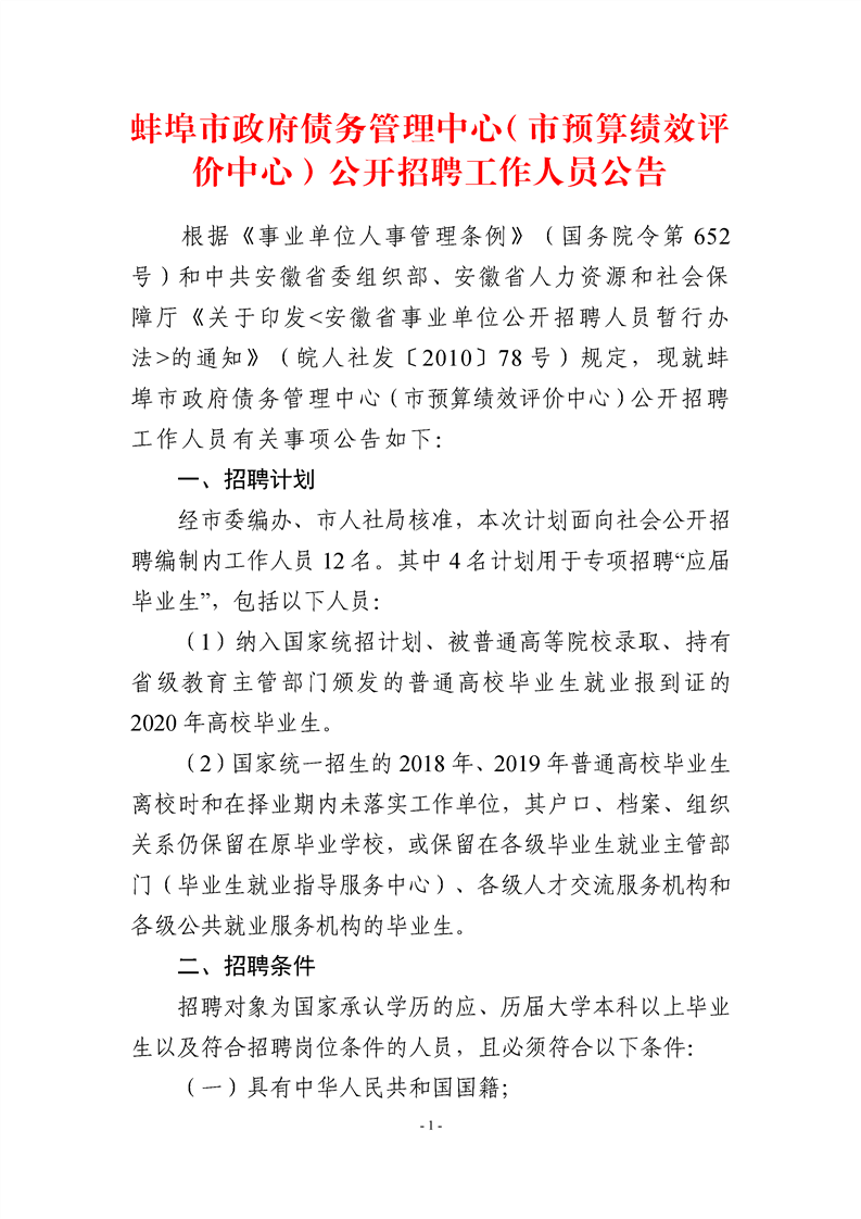 2020年蚌埠市政府債務(wù)管理中心招聘工作人員公告