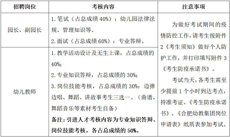 附件1:合肥幼教集團(tuán)2020年6月招聘幼兒園工作人員崗位表
