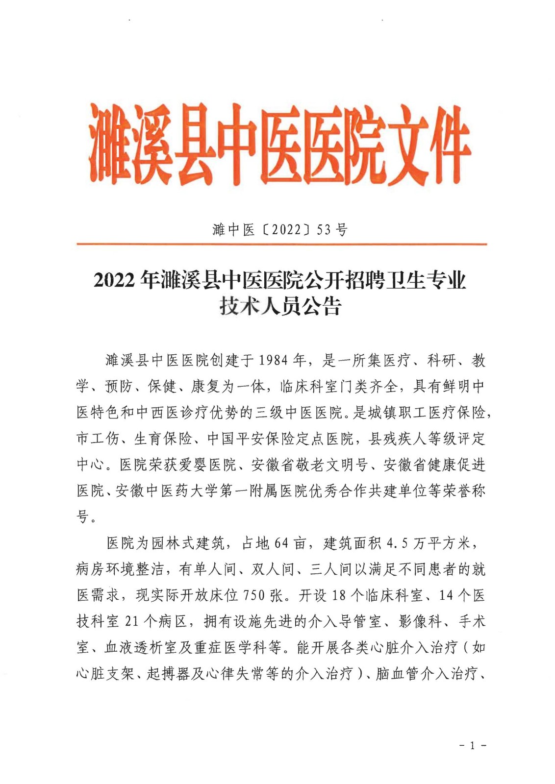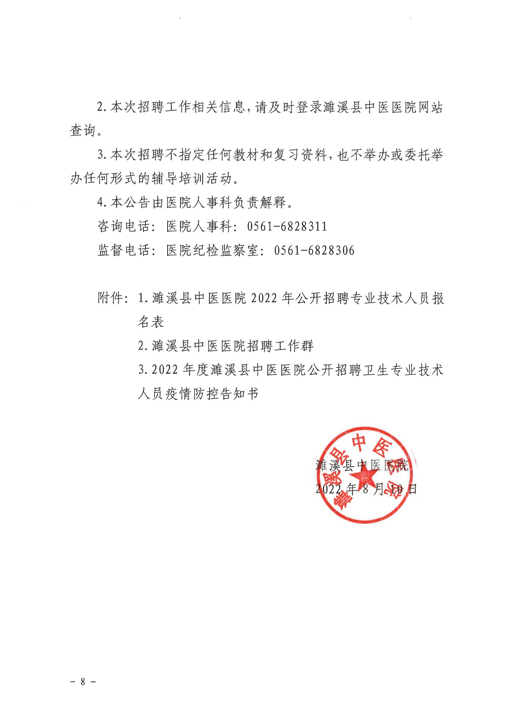 2022年淮北濉溪縣中醫(yī)醫(yī)院公開(kāi)招聘衛(wèi)生專業(yè)技術(shù)人員公告