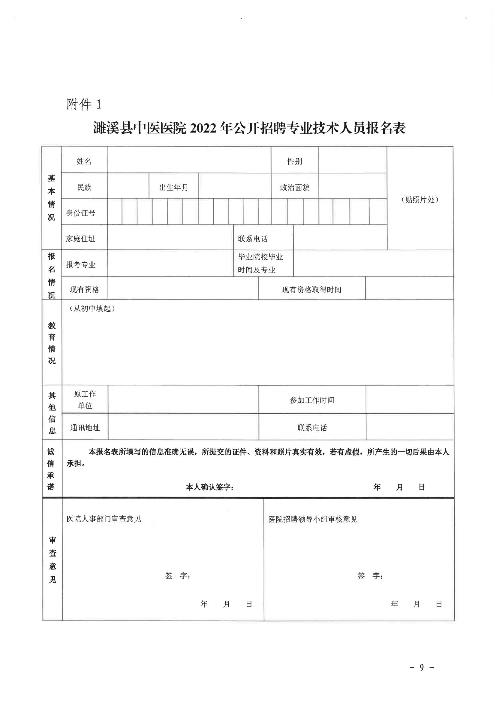附件1:濉溪縣中醫(yī)醫(yī)院2022年公開(kāi)招聘專業(yè)技術(shù)人員報(bào)名表.docx