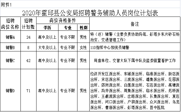 2020-06-30 23:07:25閱讀()霍邱縣人民政府根據(jù)全縣公安工作需要,經(jīng)霍邱縣人民政府批準(zhǔn),霍邱縣公安局面向社會公開選聘警務(wù)輔助人員,現(xiàn)公告如下: