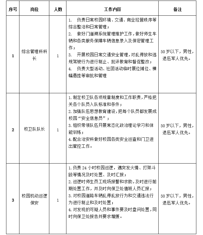 (四)保衛(wèi)處招聘一覽表