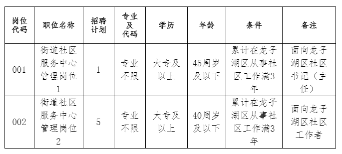 招聘對(duì)象為龍子湖區(qū)在職城區(qū)社區(qū)工作者,主要包括社區(qū)“兩委”專職成員及由省、市、區(qū)統(tǒng)一招錄的社區(qū)專職工作人員(含大學(xué)生特崗、網(wǎng)格員、各類協(xié)管員),在必須符合《蚌埠市面向社區(qū)工作者公開(kāi)招聘事業(yè)單位工作人員實(shí)施方案》規(guī)定條件基礎(chǔ)上,還需具有以下條件: