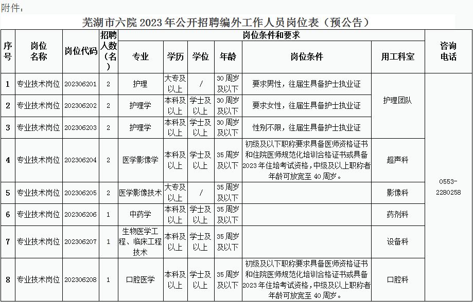 2023年蕪湖市第六人民醫(yī)院公開招聘編外工作人員預(yù)公告