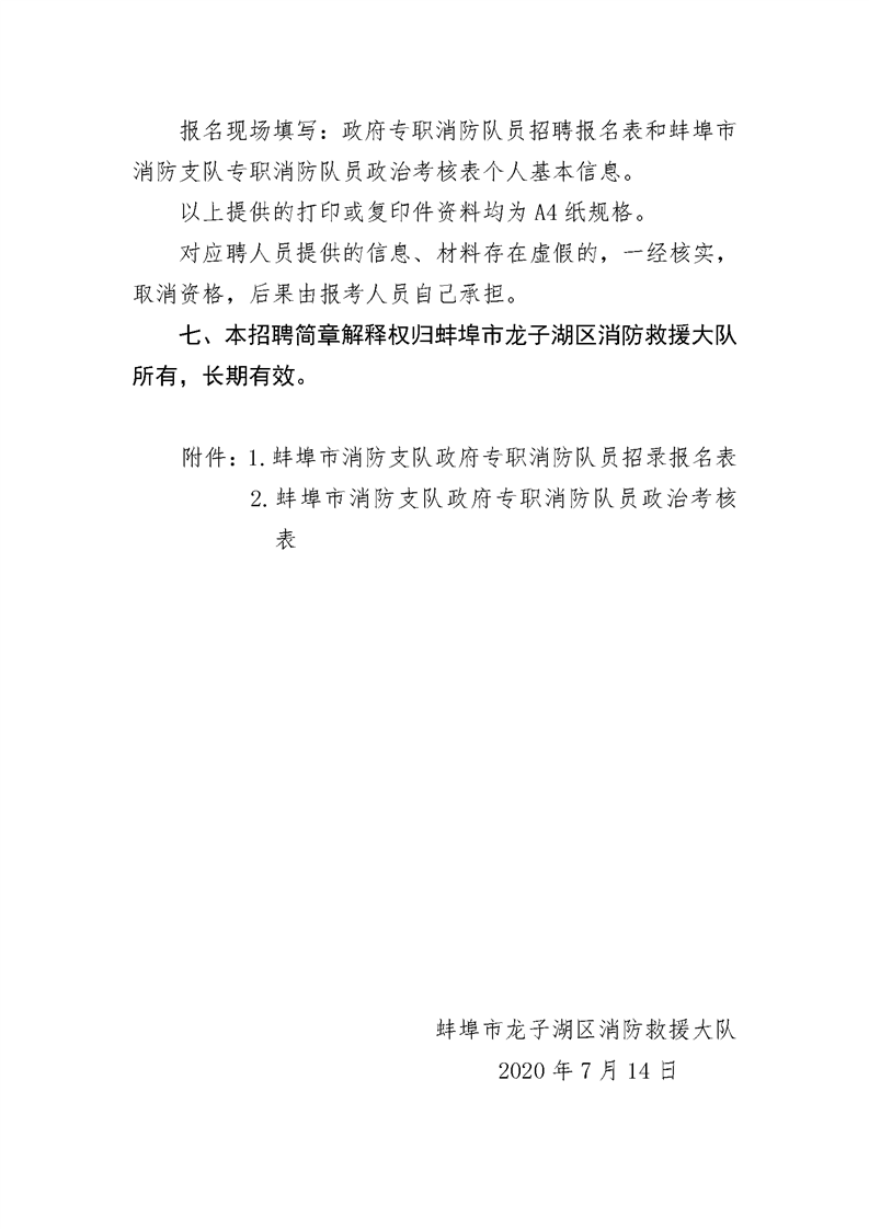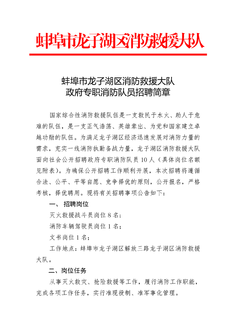 七、本招聘簡章解釋權歸蚌埠市龍子湖區(qū)消防救援大隊所有,長期有效。