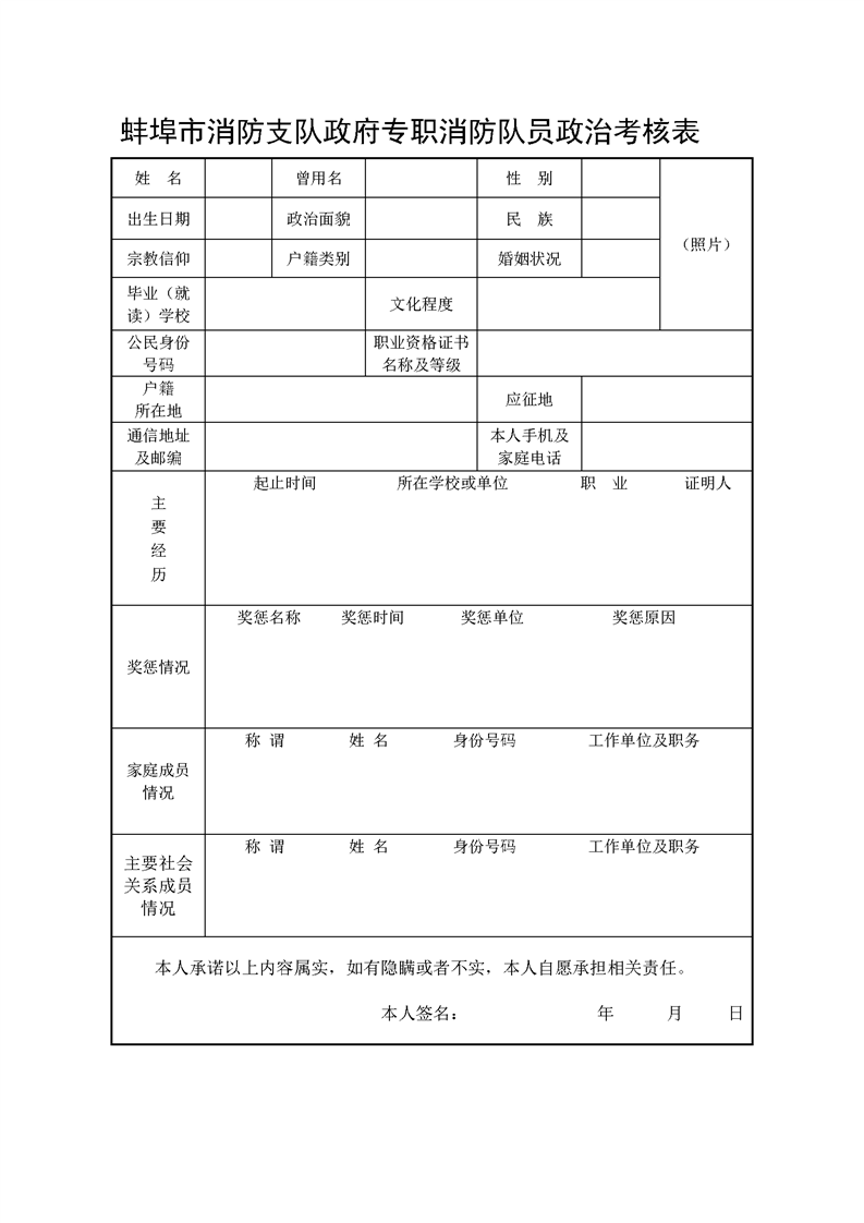 2.蚌埠市消防支隊政府專職消防隊員政治考核表