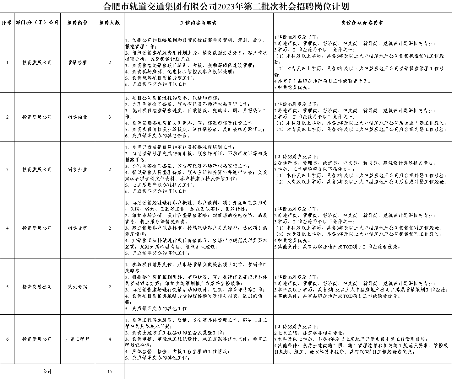 2023年合肥市軌道交通集團(tuán)有限公司第二批次社會(huì)招聘公告