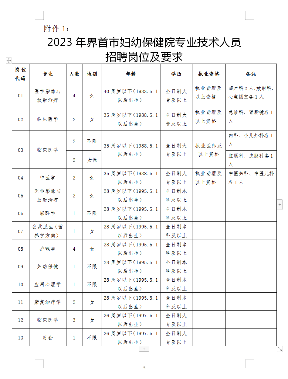 2023年阜陽界首市婦幼保健院專業(yè)技術(shù)人員招聘公告