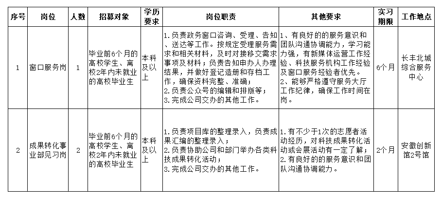 安徽科技大市場建設運營有限責任公司成立于2020年9月,是國有全資有限責任公司,公司以推動構建專業(yè)化、市場化、國際化的科技成果轉化市場服務體系為目標,依托安徽創(chuàng)新館,建強用好安徽科技大市場,打造合肥濱湖科學城高質量發(fā)展新引擎?,F(xiàn)因工作需要,面向社會招募3名見習人員,有關事項公告如下:
