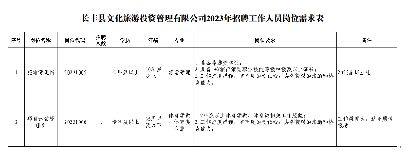 2023年合肥長(zhǎng)豐縣文化旅游投資管理有限公司招聘工作人員公告