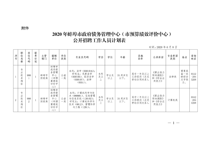 2020年蚌埠市政府債務(wù)管理中心(市預(yù)算績(jī)效評(píng)價(jià)中心)公開招聘工作人員計(jì)劃表